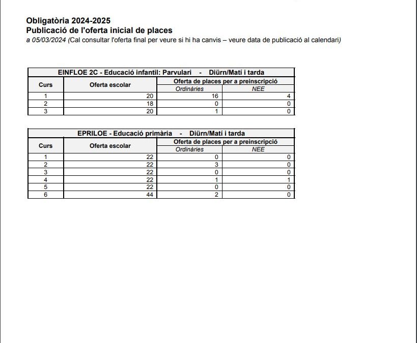 Oferta inicial de places curs 24-25 por Roser Capdevila | Mar 5, 2024 | Preinscripcions, General | 0 Comentarios Publicada l’oferta inicial de places pel curs 24-25 de la nostra escola Roser Capdevila. Enviar comentario Cancelar la respuestaTu dirección de correo electrónico no será publicada. Los campos obligatorios están marcados con *Comentario * Nombre * Correo electrónico * Web Guarda mi nombre, correo electrónico y web en este navegador para la próxima vez que comente. Δ