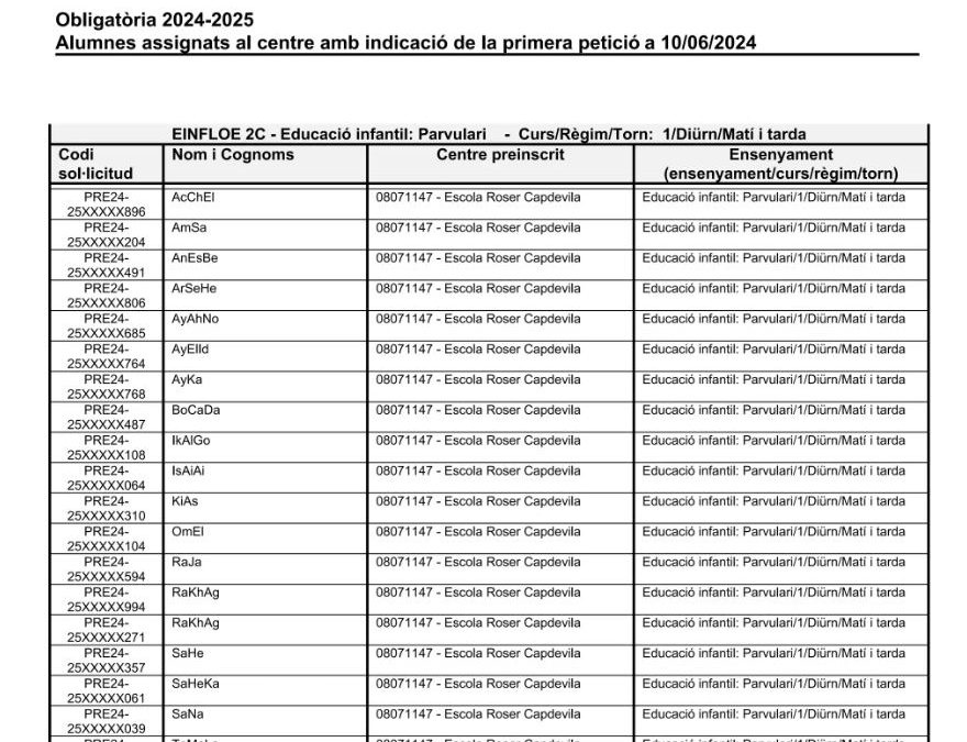 Persones assignades i en llista d’espera por Roser Capdevila | Jun 12, 2024 | Preinscripcions, General | 0 Comentarios Ja tenim publicat el llistat de les persones assignades al centre pel curs 24-25. També les persones que estan en llista d’espera. Enviar comentario Cancelar la respuestaTu dirección de correo electrónico no será publicada. Los campos obligatorios están marcados con *Comentario * Nombre * Correo electrónico * Web Guarda mi nombre, correo electrónico y web en este navegador para la próxima vez que comente. Δ
