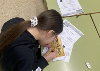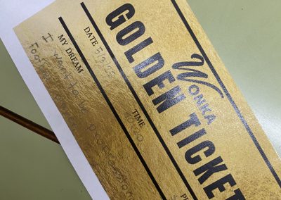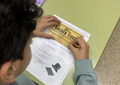 A classe, durant les hores d’anglès hem estat treballant una mica el fil conductor de la obra, els personatges principals, alguna cançó i fins i tot vam trobar un GOLDEN TICKET!!!!!!