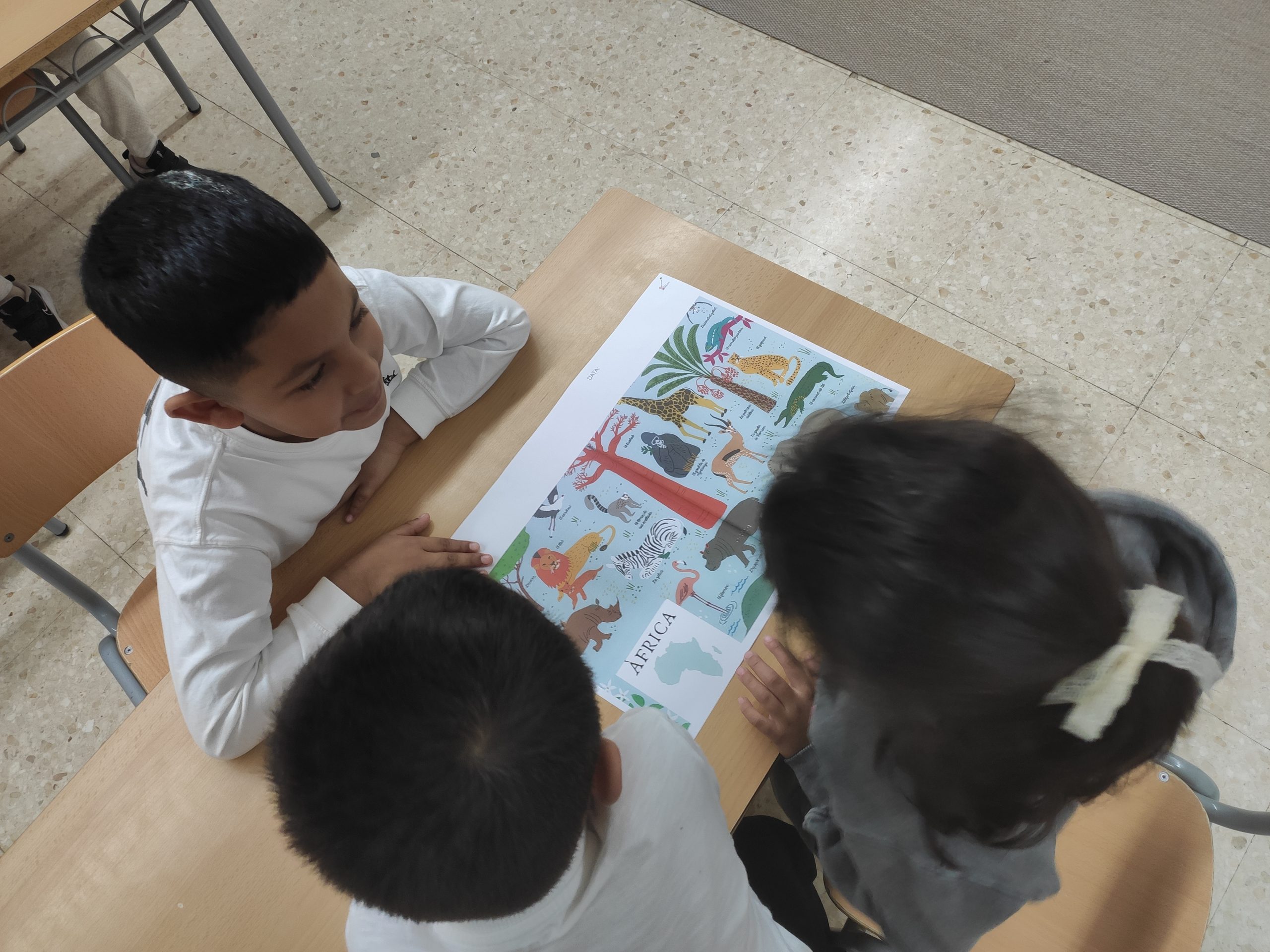 També vam investigar si els animals que viuen als diferents països són els mateixos, vam poder iniciar-nos en el treball en grup i conèixer els 6 continents del món. Amb els animals vam poder parlar dels diferents hàbitats. I ara estem aprenent sobre els paisatges, n‘hi ha tants i tan diferents!