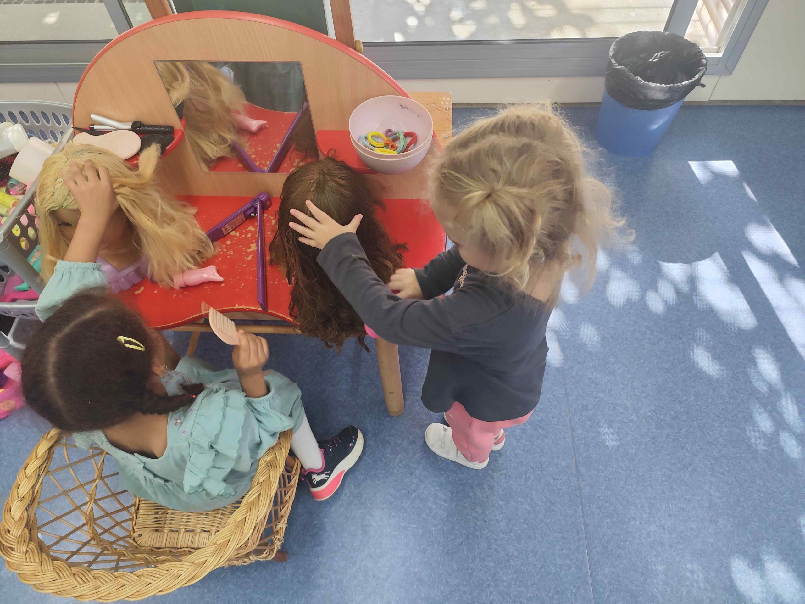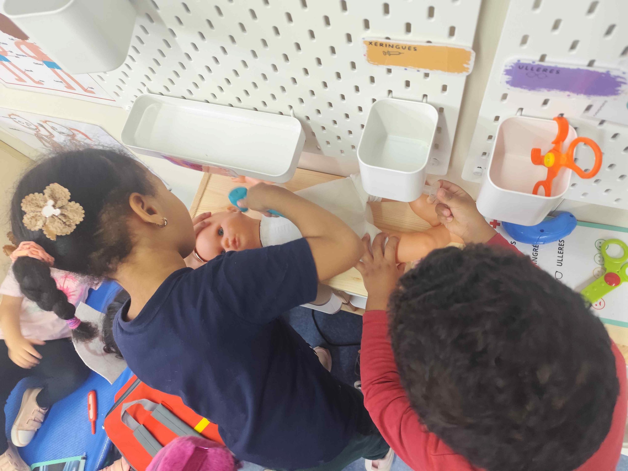 Avui us presentem la nostra ludoteca, on podem trobar diferents espais: mercat, casa amb nines, metges, disfresses, cotxes, perruqueria i teatre. Amb ajuda de tots i totes les mestres hem renovat l’espai perquè els més petits puguin gaudir d’una estona de joc simbòlic i compartir vivències amb els seus companys i companyes de classe.