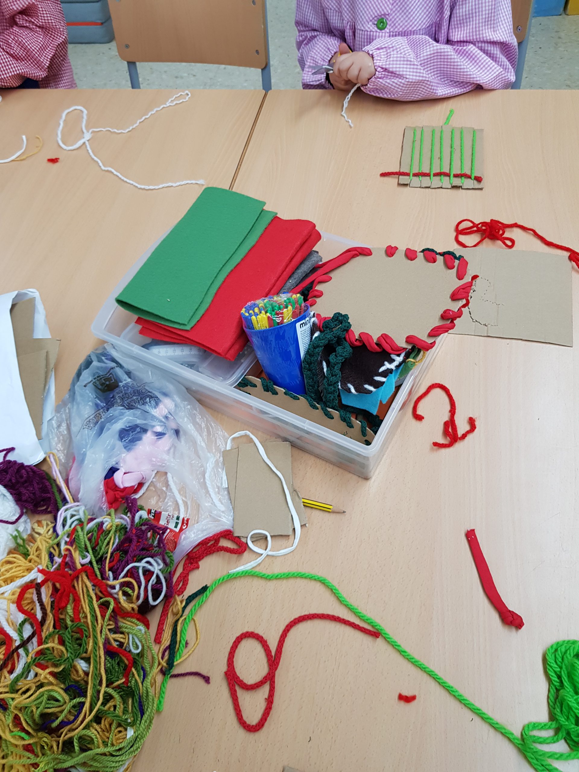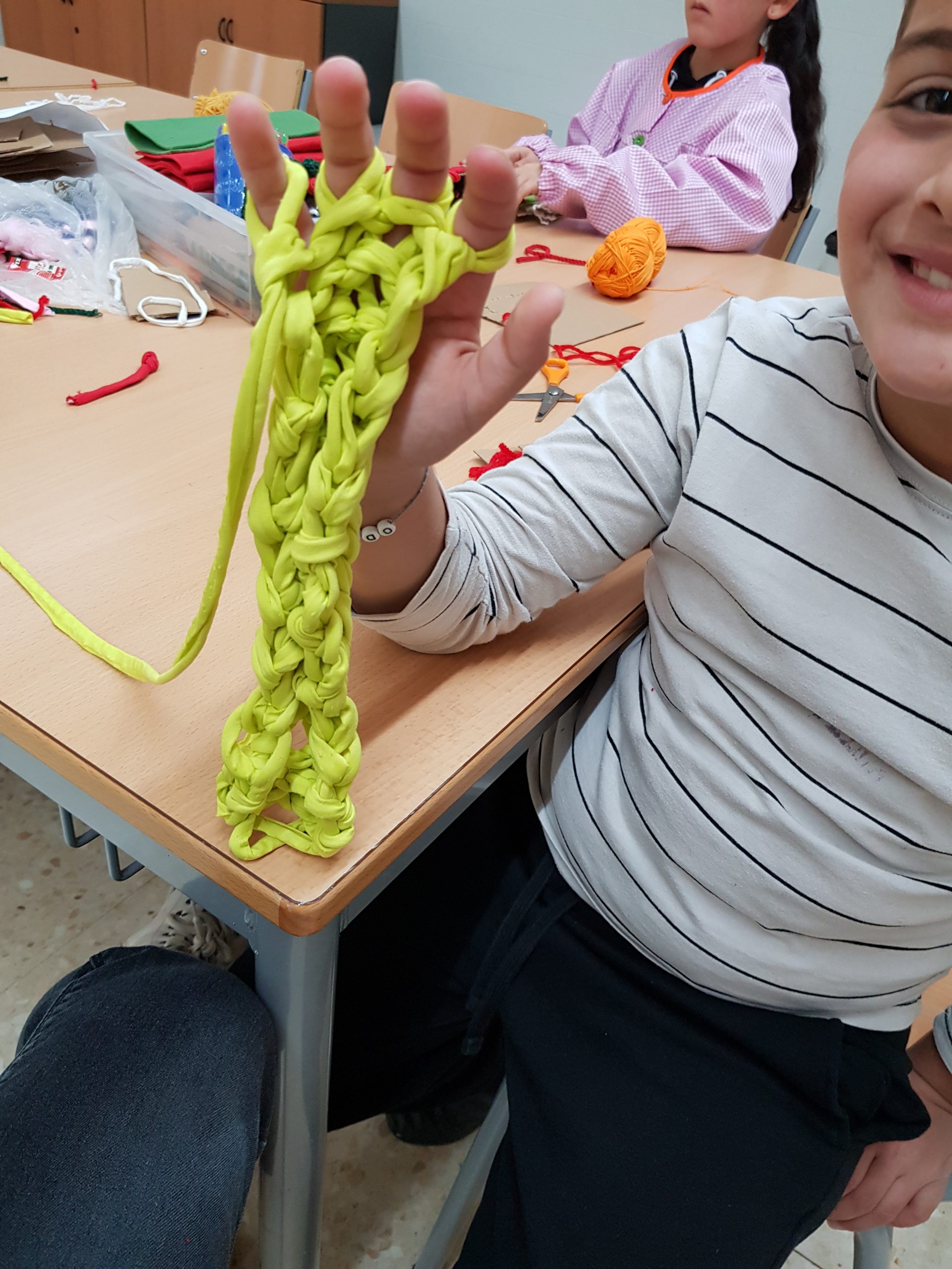 – Taller d’ART TÈXTIL, amb l’autora representativa FINA BADIA, s’aprenen les tècniques bàsiques de costura i els estris i materials que es poden usar. Aprenem tècniques de cadeneta, trenes, cosir, etc., i confeccionem bosses, clauers, formes, la nostra lletra, etc.